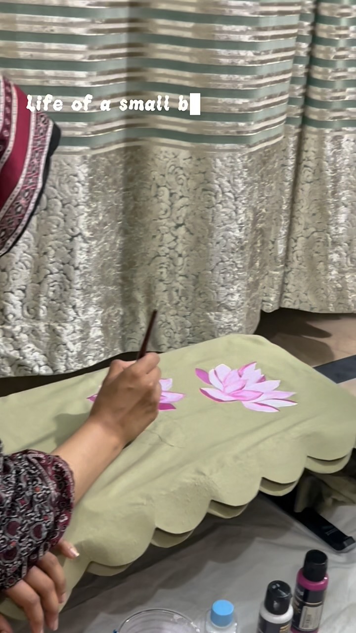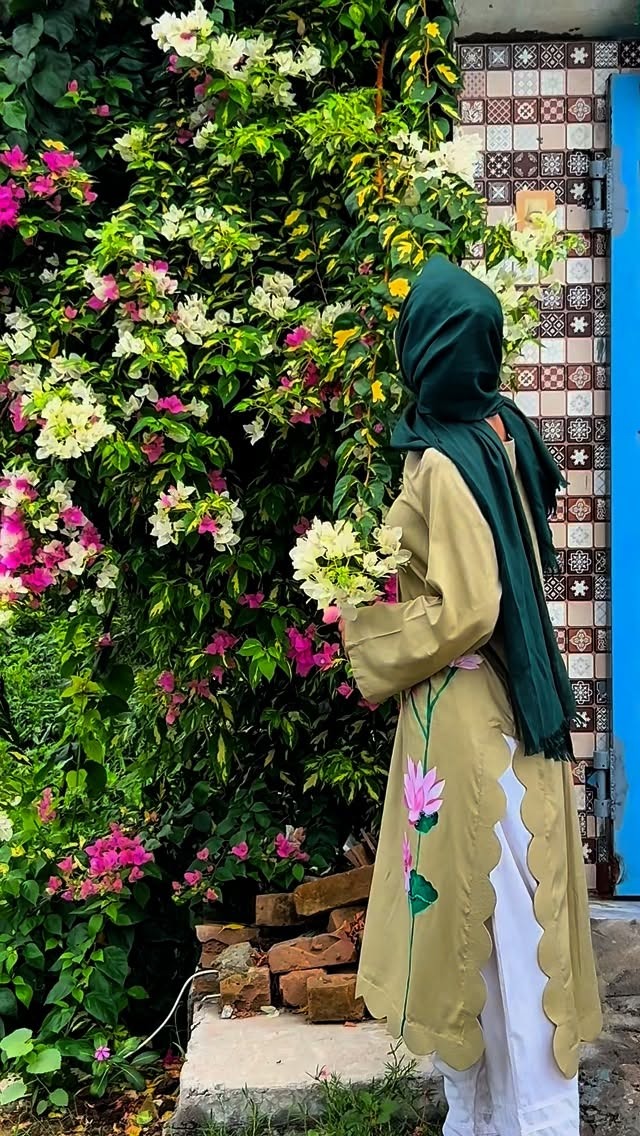 This beautiful handcrafted kurta is a statement of natural charm and artistic detailing. The soft olive-green fabric flows gracefully, highlighted by hand-embroidered pink lotus flowers that symbolize purity and serenity. Perfect for women who appreciate subtle elegance and traditional artistry.